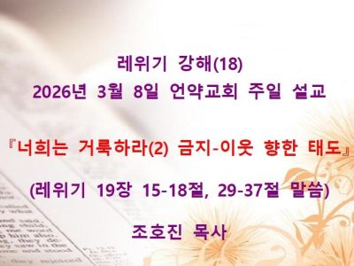 2026년 3월 8일 언약교회 이모조모입니다. 샬롬~ Read More →