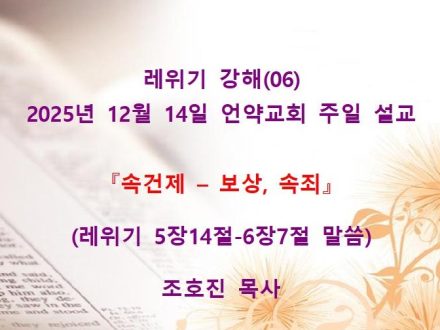 레위기 강해(06) 레위기 5장14절-6장7절 말씀 『속건제-보상, 속죄』(25년 12월 14일)