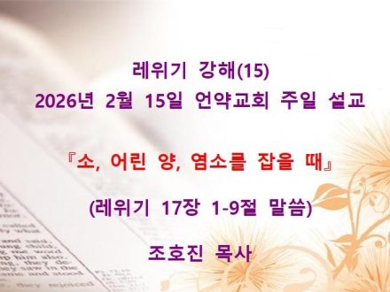 2026년 2월15일 언약교회 주일예배 설교입니다. 제목: 소, 어린 양, 염소를 잡을 때』 본문: 레위기 17장 1-9절 말씀