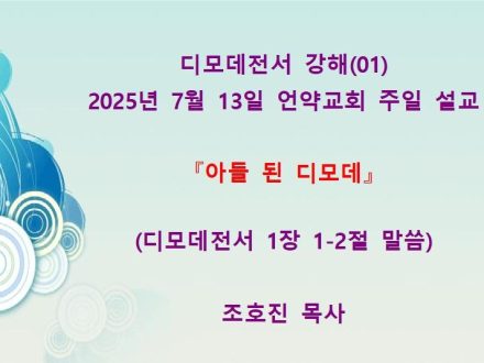 2025년 7월 13일 언약교회 주일예배 설교입니다. 제목: 『아들 된 디모데』 본문: 디모데전서 1장 1-2절 말씀
