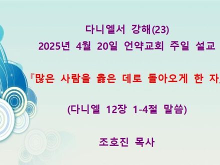 다니엘 강해(23) 다니엘 12장 1-4절 말씀 『많은 사람을 옳은 데로 돌아오게 한 자』(25년 4월 20일)
