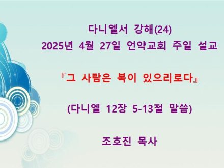 다니엘 강해(24) 다니엘 12장 5-13절 말씀 『그 사람은 복이 있으리로다』(25년 4월 27일)