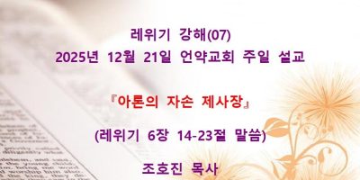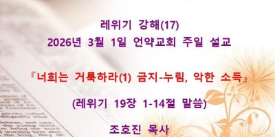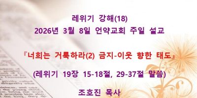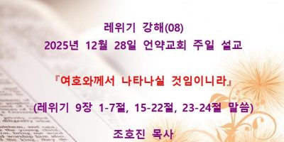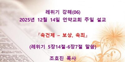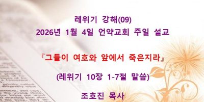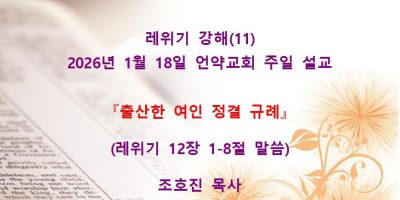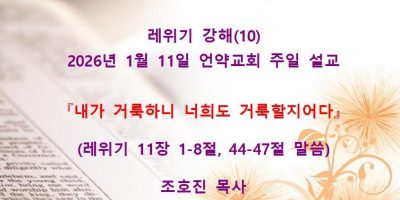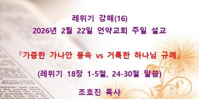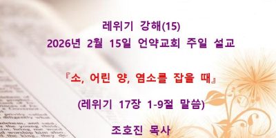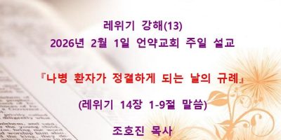 2026년 2월8일 언약교회 주일예배 설교입니다. 제목: 『속죄일(욤 키푸르)』 본문: 레위기 16장 11-19절 말씀 Read More →
