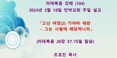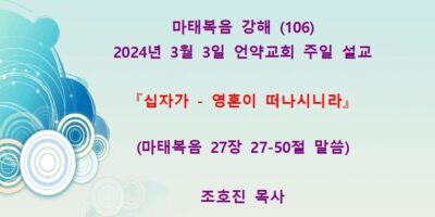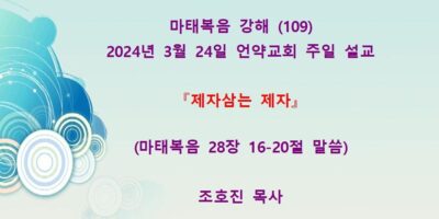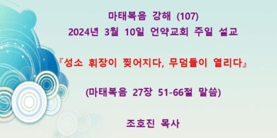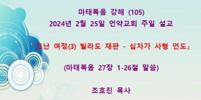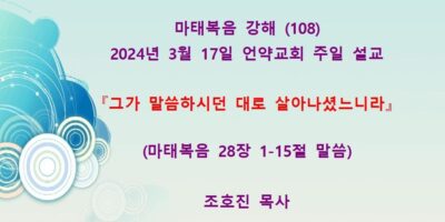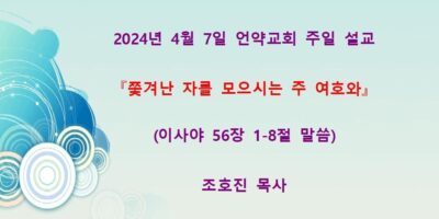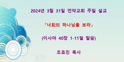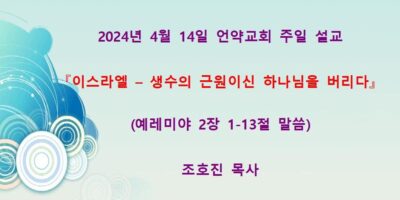 2024년 4월21일 언약교회 주일예배 설교입니다. 제목: 『너희가 내 손에 있느니라』 본문: 예레미야 18장 1-12절 말씀 Read More →