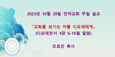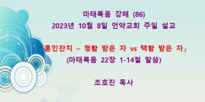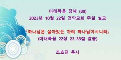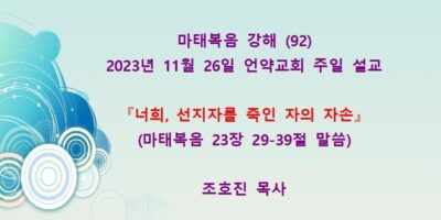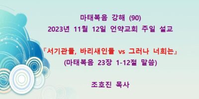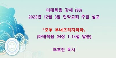 2023년 12월3일 언약교회 주일예배 설교입니다. 제목: 『다 무너뜨려지리라』 본문: 마태복음 2장 1-14절 말씀 Read More →