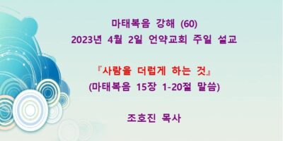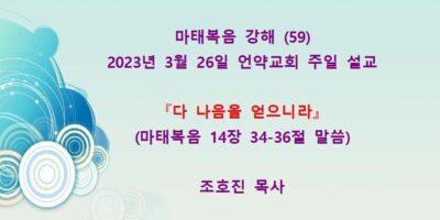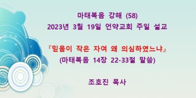 2023년 5월7일 언약교회 주일예배 설교입니다. 제목: 『하나님의 아들이시니이다』 본문: 마태복음 16장 13-20절 말씀 Read More →