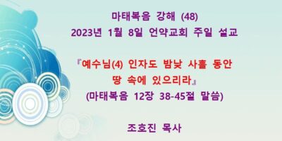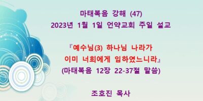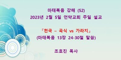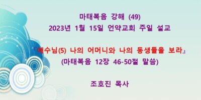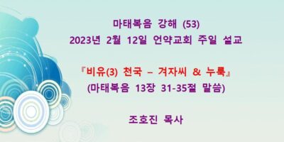 2023년 2월26일 주일예배 설교입니다. 제목: 『예수를 배척한지라』 본문: 마태복음 13장 53-58절 말씀 Read More →