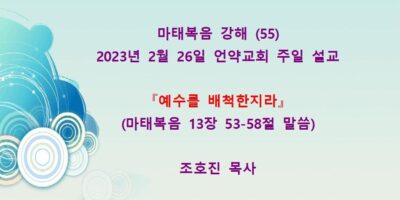 마태복음강해(55) 마태복음 13장 53-58절 말씀 『예수를 배척한지라』 (23년 2월26일)