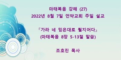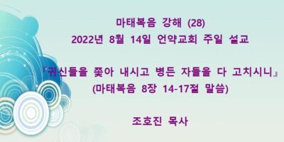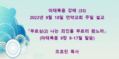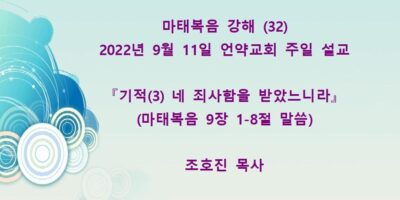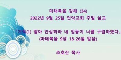 2022년 10월9일 언약교회 주일예배 설교입니다 제목: 『기적(3), 부르심(3) 무리를 보시고 불쌍히 여기시니』 본문: 마태복음 9장 32-38절 말씀 Read More →