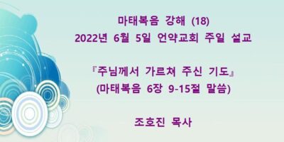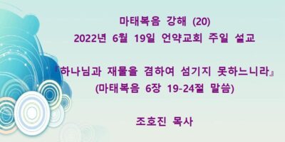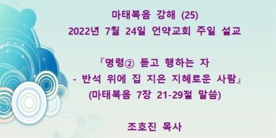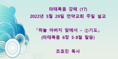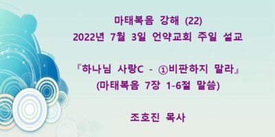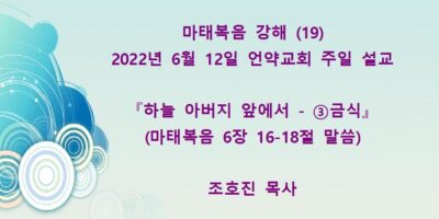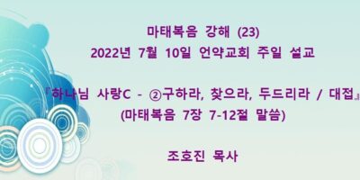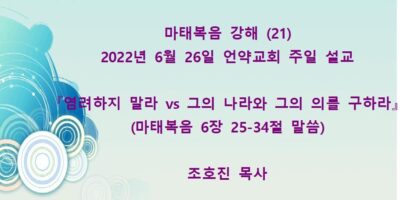 2022년 7월31일 언약교회 주일예배 설교입니다. 제목: 『내가 원하노니 깨끗함을 받으라』 본문: 마태복음 8장 1-4절 말씀 Read More →