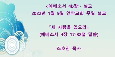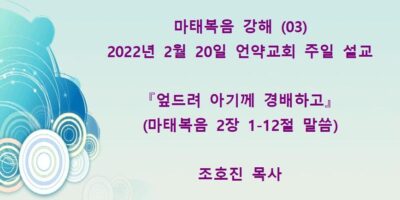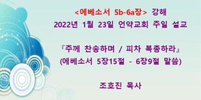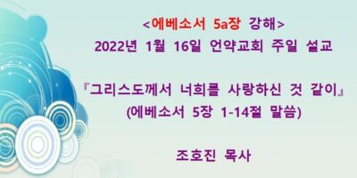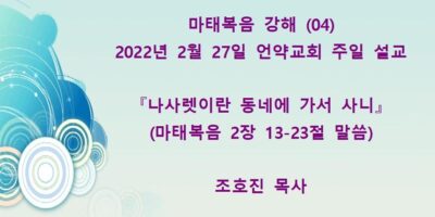2022년 3월13일 언약교회 주일예배 설교입니다. 제목: 『이는 내 사랑하는 아들이요 내 기뻐하는 자라』 본문: 마태복음 3장 13-17절 말씀 Read More →
