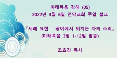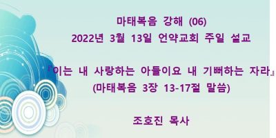 마태복음강해(06) 마태복음 3장 13-17절 말씀 『이는 내 사랑하는 아들이요 내 기뻐하는 자라』 (22년 3월13일)