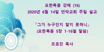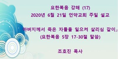 2020년 9월20일 언약교회 주일예배설교입니다. 가정예배로 주일예배 드리시는 분들께서는 이 동영상 설교를 사용하시기 바랍니다. 제목: 『너희 악인들 vs 너희 여호와를 경외하는 자들』 본문: 말라기 3장13절 – 4장3절 말씀 ... Read More →