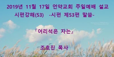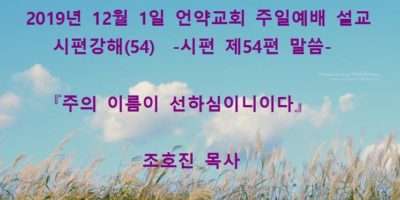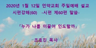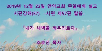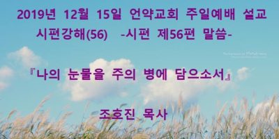 2020년 1월19일 언약교회 주일예배 설교입니다. 제목: 『땅끝에서부터 주께 부르짖으오리니』 본문: 시편 제61편 말씀 Read More →